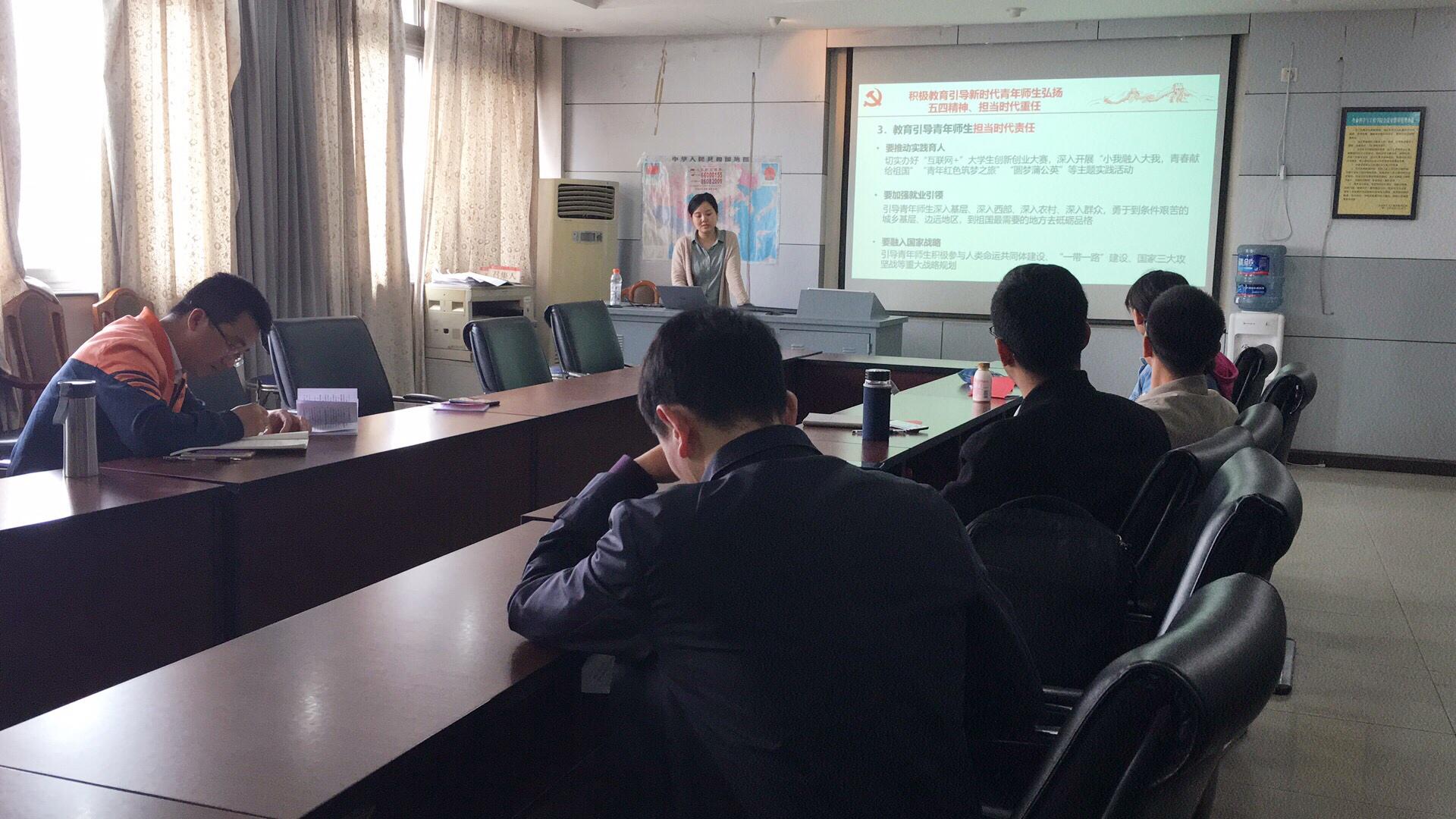 2019-05-164月25日晚8:00,2018级和2017级硕士研究生党支部在九里校区J4305召开主题为“认真学习贯彻习近平总书记为第五批全国干部学习培训...