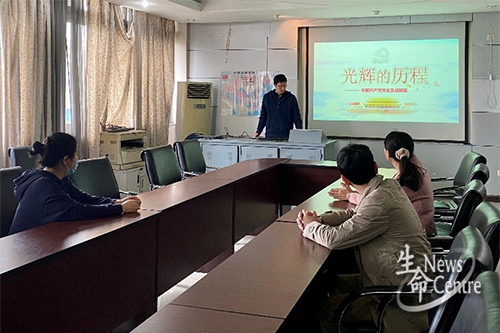 2021-04-10为庆祝中国共产党成立100周年,深入开展党史学习教育,2021年4月8日下午,三亿药学系教工党支部在九里校区3609会议室开展第一期党史学...