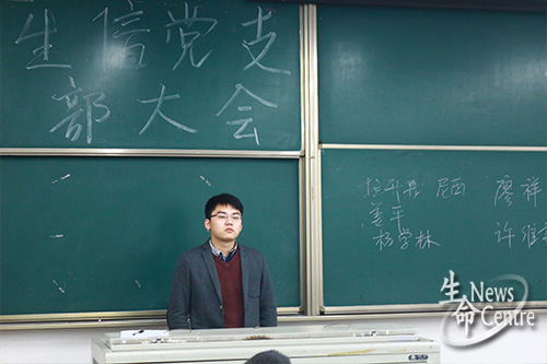 最后,魏老师对本次大会作出总结,他希望新党员能够向老党员学习,发扬党的优良传统,发挥党员的先锋模范作用,同时也要求党支部全体成员在工作上要更加细致认真,为使生信党支部成为“学习型、创新型、服务性”党支部而共同努力。