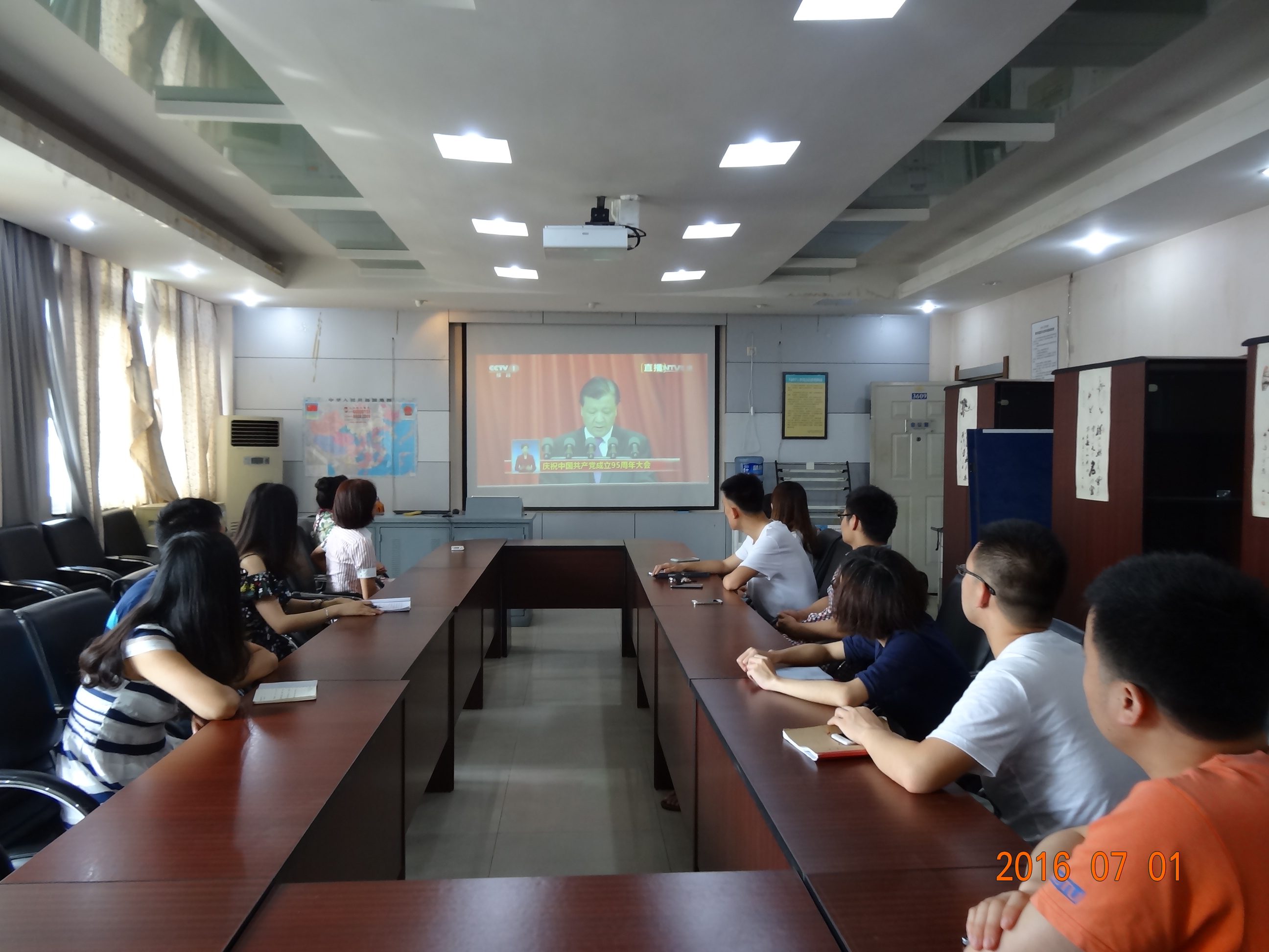 为迎接建党95周年,按公司党委统一部署,7月1日上午,公司党委组织公司党员干部、师生代表在3609集体观看了中国共产党成立95周年大会现场直播视频。公司党委书记李卓慧、党委委员贺妍、办公室主任陈琳、研究生党支部书记吴润、李祯、本科生党支部书记黄国强,以及师生代表20余人观看了视频。与此同时,公司师生党员还通过网络形式,在办公室、实验室、宿舍等地收听收看了直播。