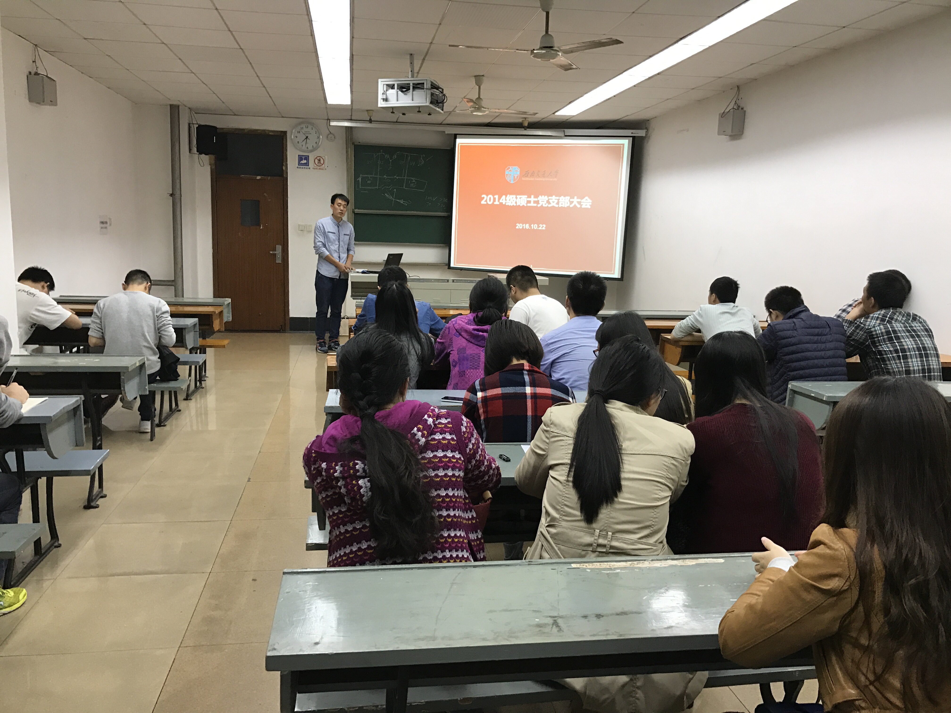 20161022日晚,2014级硕士1班、2班党支部在逸夫馆4305B召开“学问责条例,学先进典型”专题学习会,全体党员和积极分子参加了学习。