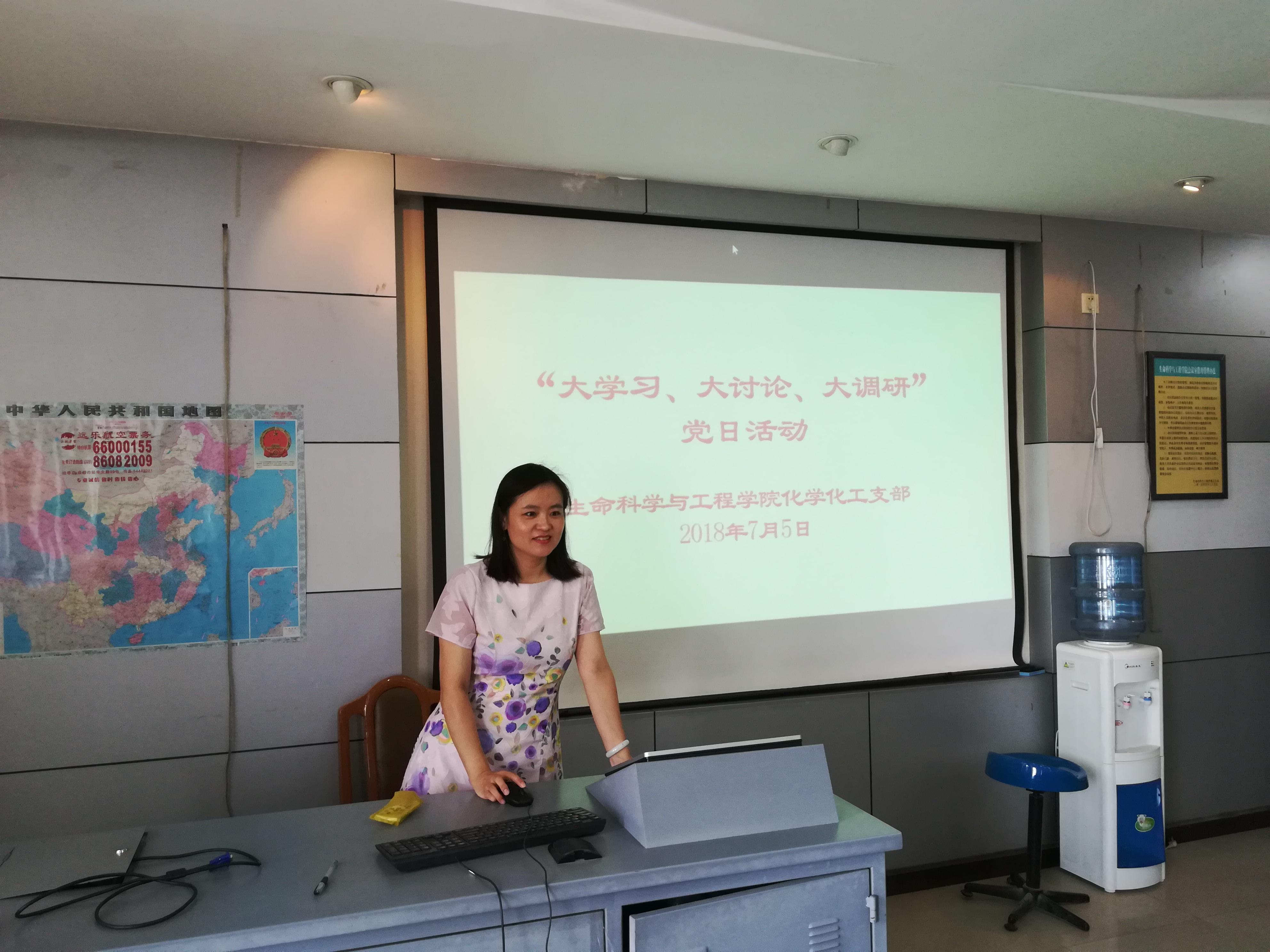 75日下午,化学化工系党支部在九里校区3609会议室召开了党日活动,围绕“培养什么样的人、如何培养人、为谁培养人”等重大问题开展“大讨论”。活动由党支部书记王萃娟同志主持,支部党员参加讨论。