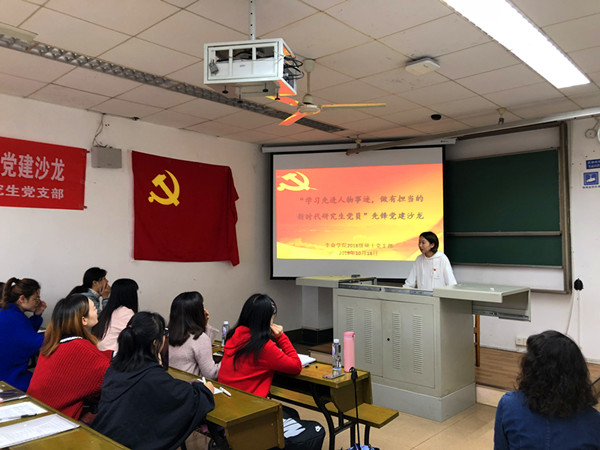 首先,贺妍老师向与会同志作了题为《展现时代新风貌、激扬青春正能量——青年老员工的责任担当》的党课讲授,从新形势对青年老员工的新要求和研究生党员及入党积极分子如何发挥作用等方面给大家作了讲解和指导,号召青年老员工一定不要辜负党和国家的历史重托,努力强化自己的党性观念和责任担当,不断炼造自己的意志和能力,在思想上、行动中发挥党员的先锋模范作用,夯实本领、创先争优,努力成为对国家对社会有用的人才。