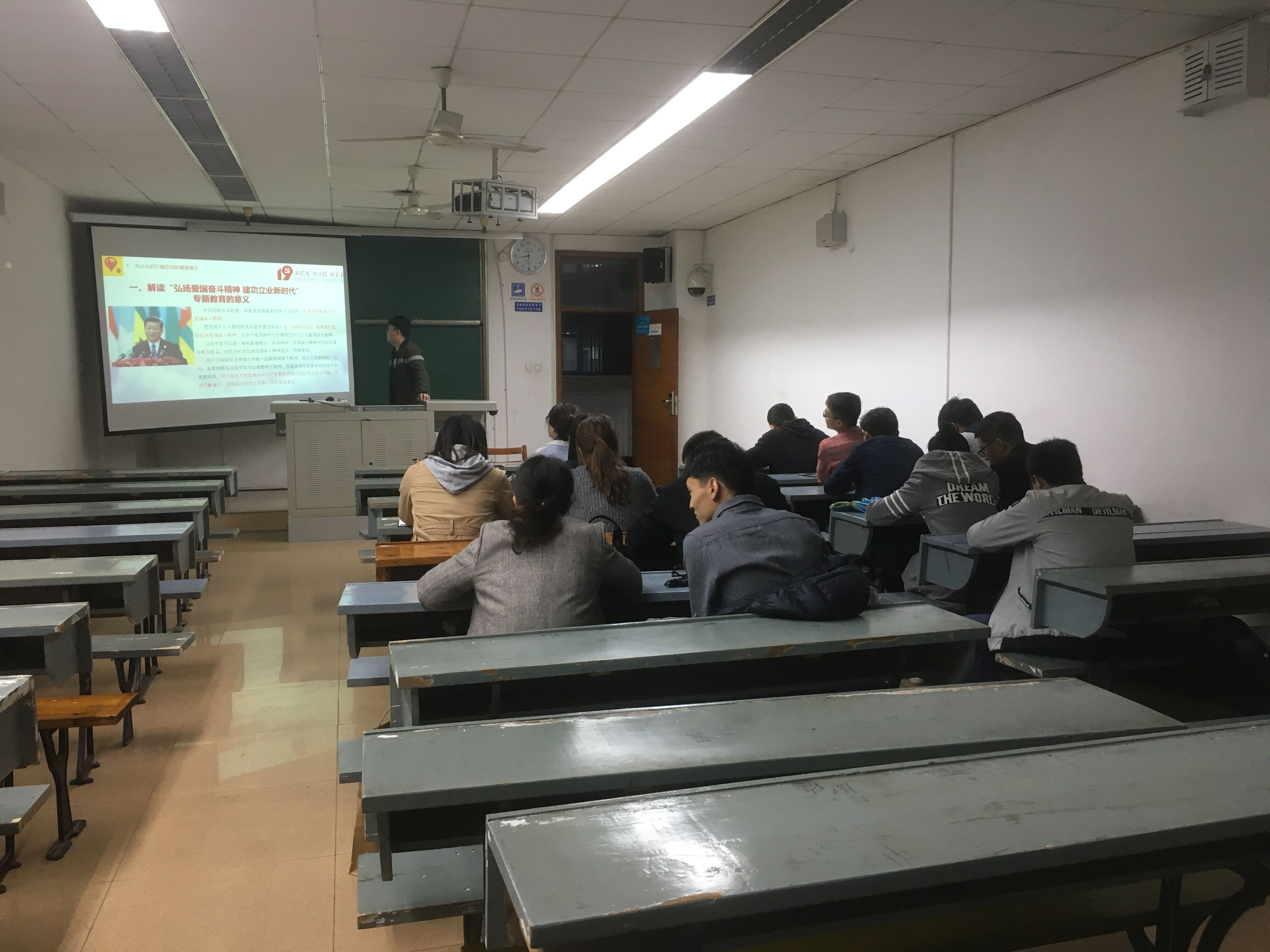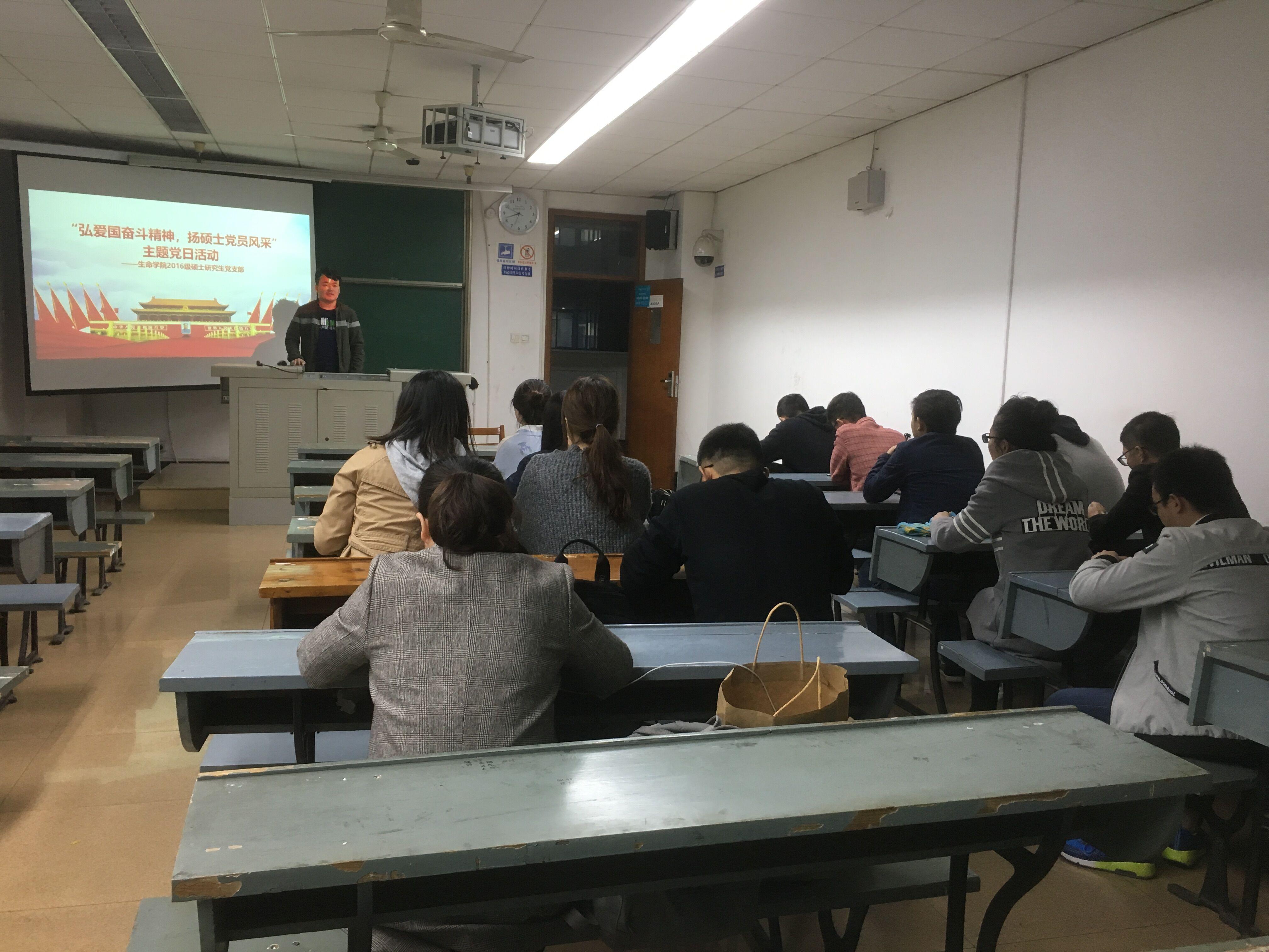 2016级硕士党支部于10月18日晚在4305A教室召开“弘爱国奋斗精神,扬硕士党员风采”主题党日活动。活动由支部书记韦乐华主持,支部全体党员参加了学习,支部指导教师、公司专职组织员华晶晶也出席了本次活动。
