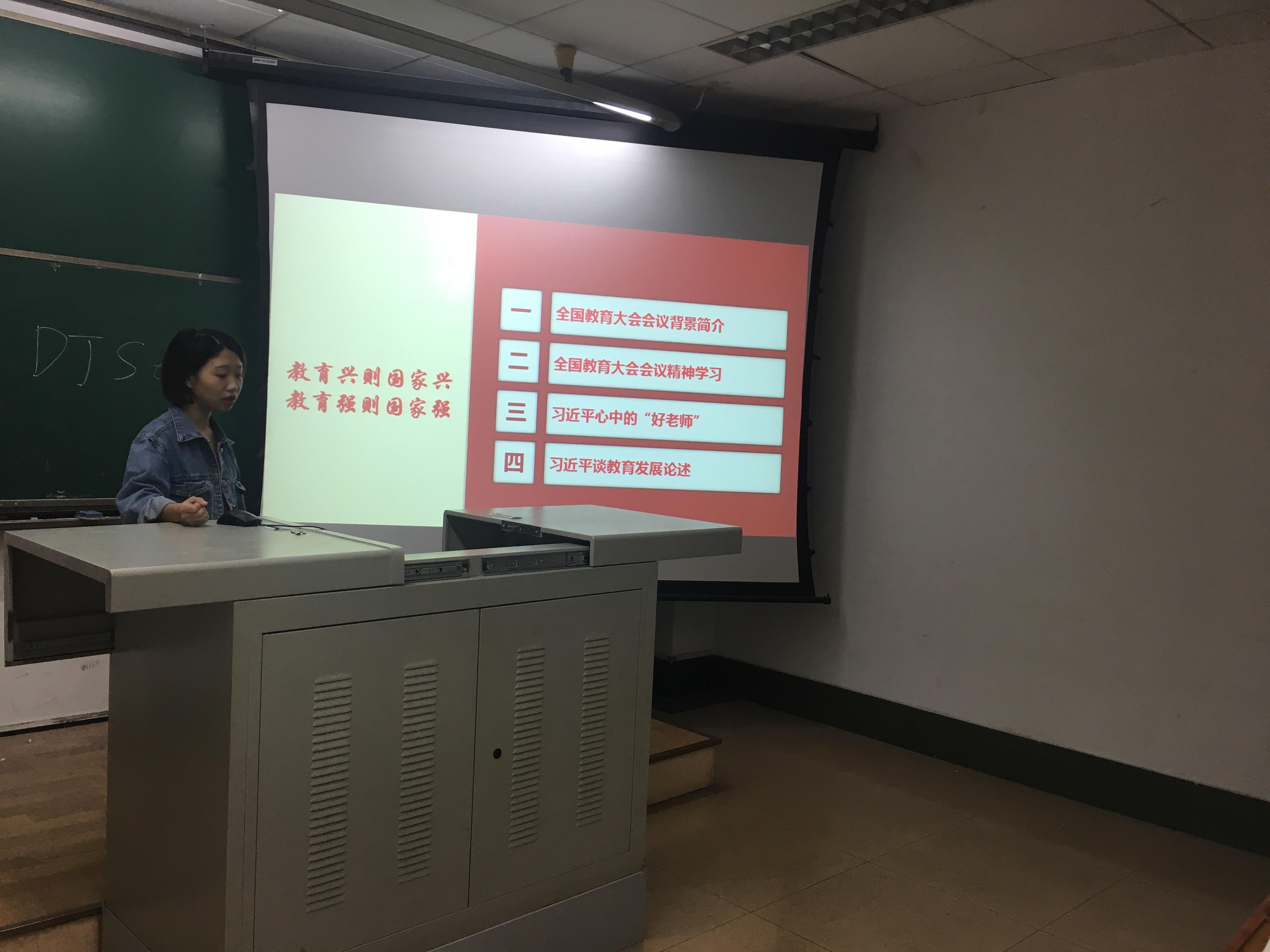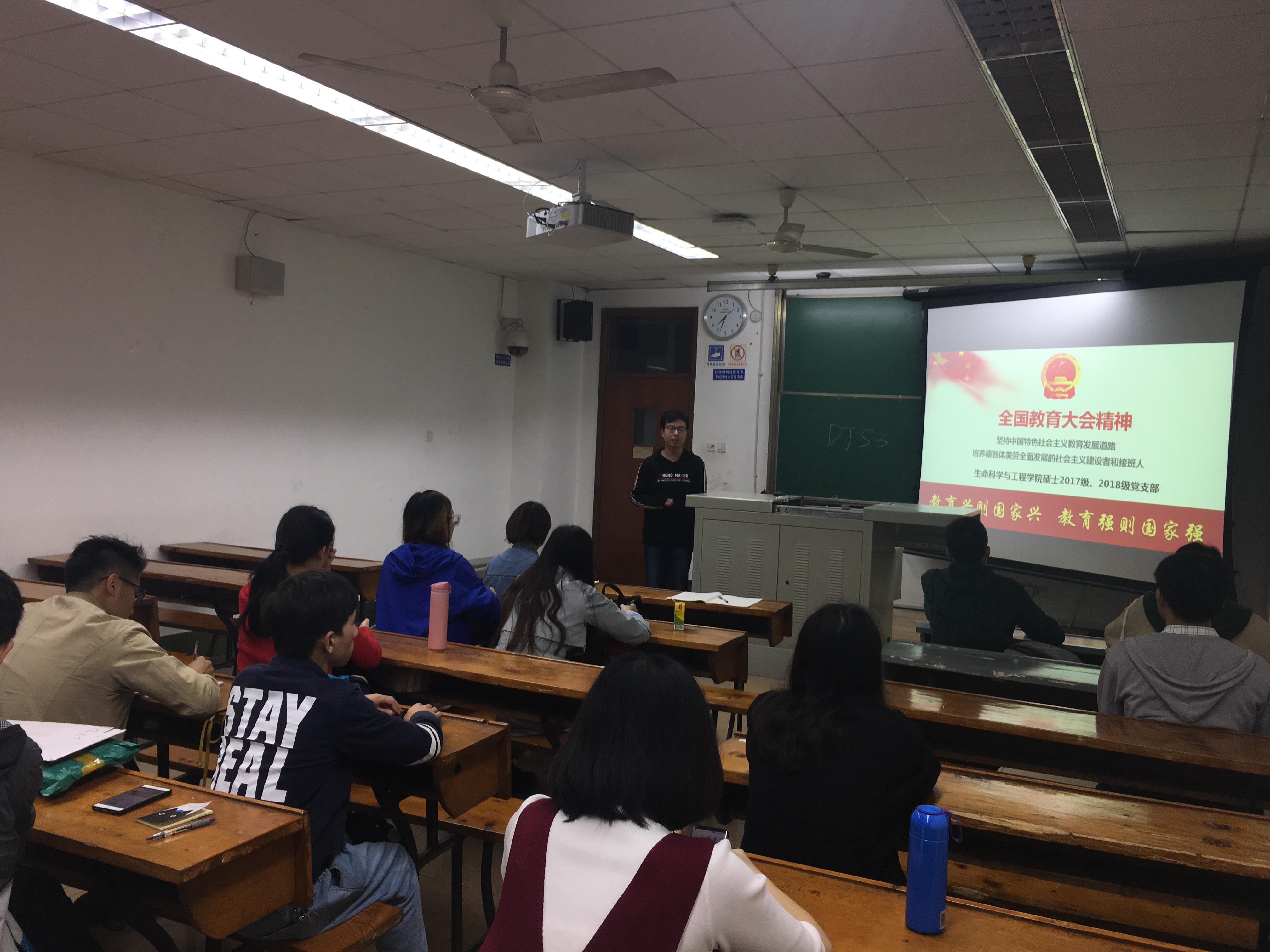 为学习贯彻全国教育大会精神,公司2017级、2018级硕士研究生党支部于11月1日晚在逸夫馆4304B教室联合开展了以“学习教育大会精神,为公司建设凝心聚力”为主题的党日活动。活动由2017级研究生党支部书记孙源同志主持,2018级党支部书记王珏同志主讲,两个支部的党员参加了活动。