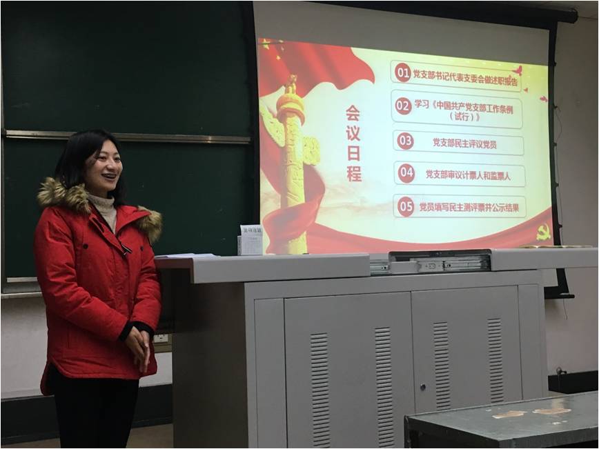 首先,孙源同志组织大家进一步学习了《中国共产党支部工作条例(试行)》,指出值此两会开展期间,基层党组织更应该进行深入的学习来加强支部规范性建设。随后,孙源同志代表支委会作了2018年述职报告,总结了党支部2018年的工作,肯定了过去一年在发展党员、开展党内组织生活会等工作上的成绩,同时也指出了支委会工作的一些缺点和不足,对如何进一步提升党组织凝聚力及增强同志们党性修养问题提出了建设性意见。接下来,支部全体正式党员都上台做了自我总结,并由其他正式党员进行民主评议。会议最后,全体与会人员重温了入党誓词,进一步坚定了爱党爱国的决心。