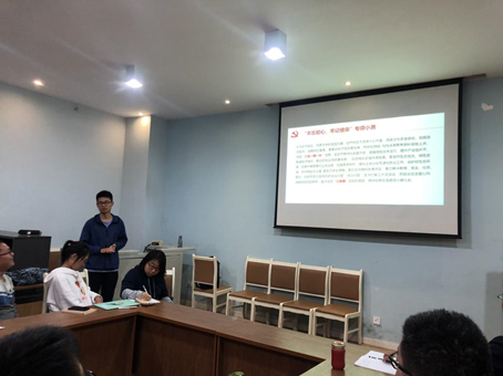 随后由预备党员黄斌翰带领大家进行“共和国70年光辉历程”心得分享。黄斌翰就“习近平在内蒙古考察并指导开展‘不忘初心,牢记使命’主题教育”及文章《“习近平同志倡导年轻人要‘自找苦吃’”——习近平在厦门(十三)》组织大家展开学习讨论。期间,他将习近平在内蒙古的考察指导概括为人民生活、文化发展、教育培养及生态建设四个方面,并以题目问答的形式加深同志们的印象,提高学习效率。接着,黄斌翰结合自身科研竞赛及暑期“三下乡”社会实践经历,深入浅出地分享了关于对“年轻人要‘自找苦吃’”的理解,并强调了老员工社会实践的必要性及重要性,得到了与会人员的一致认可。