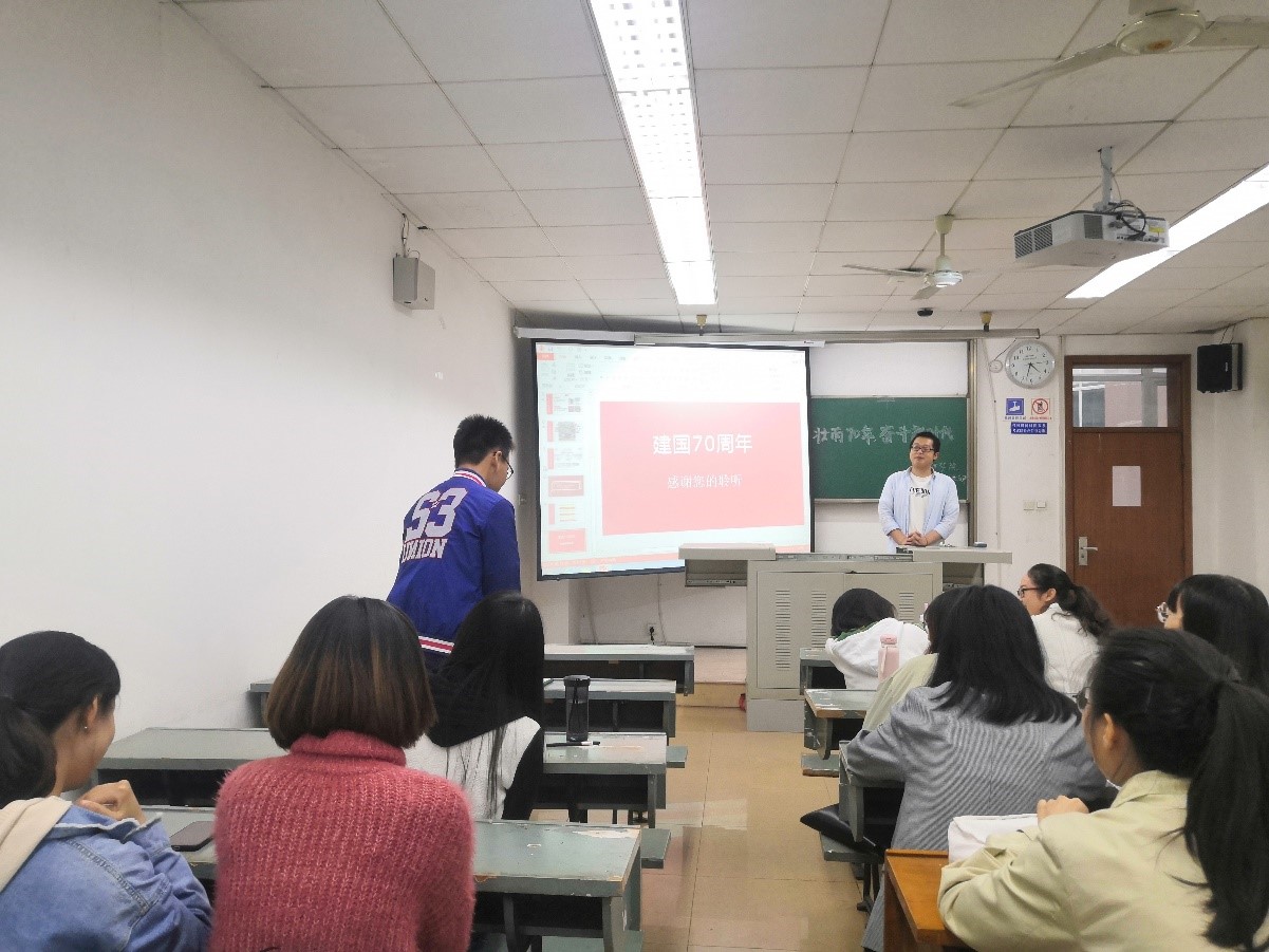 1949年中华人民共和国成立,彻底结束了中华民族100多年的屈辱历史,实现了人民最迫切、最深沉的愿望,中华民族从此获得了历史性新生。2019年,恰逢中华人民共和国成立70周年华诞,回首祖国这70年的光辉历程,中华儿女怀着满腔热血建设着我们的国家。今天,也就是2019年10月15日下午16:00,三亿2019级研究生党支部在J4305A开展了“壮丽70载,奋进新时代”专题党课教育活动,全体党员聚集此地,聆听党支部书记讲党课,进行交流讨论和分享。