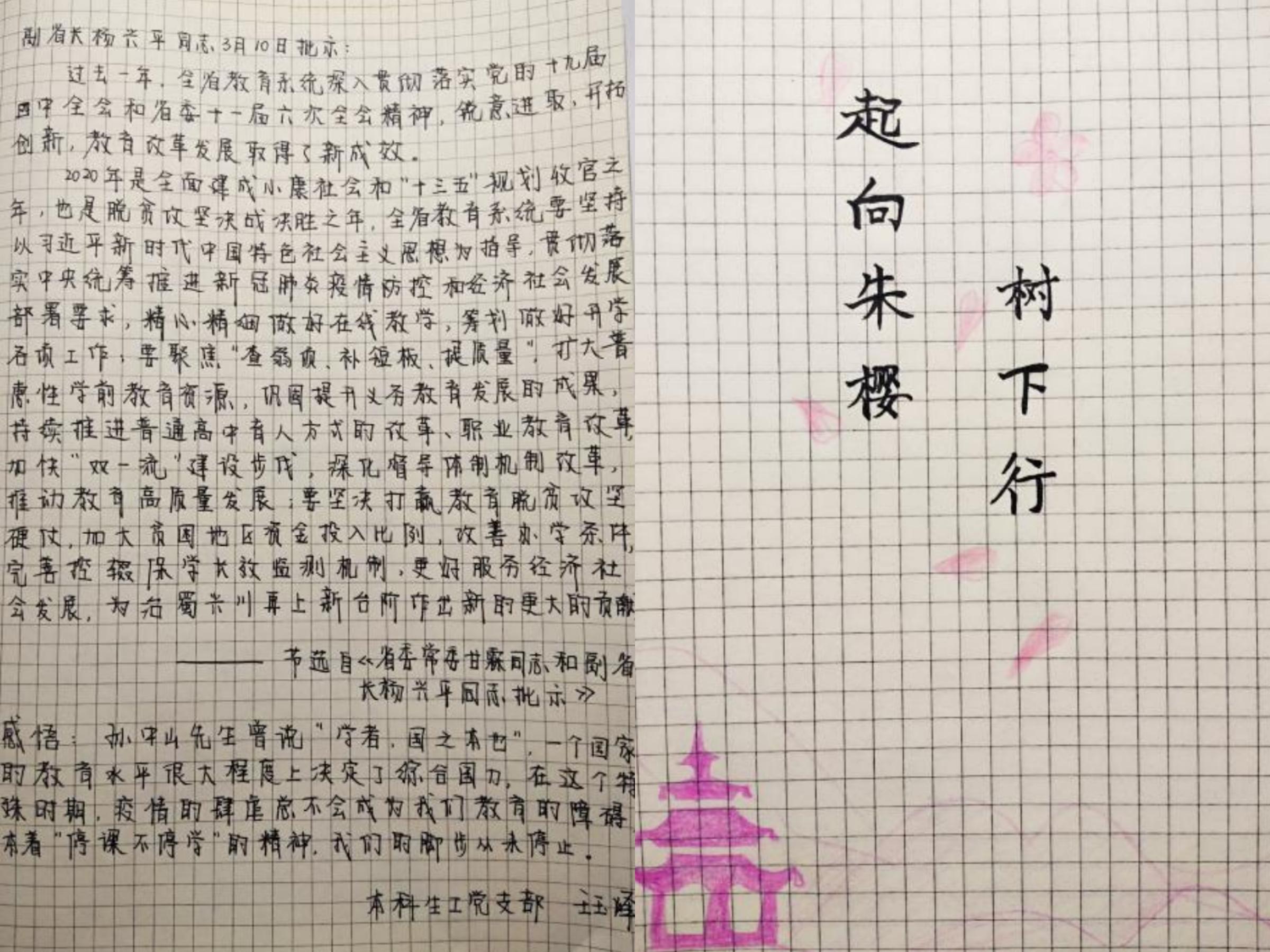 线上会议结束后,支部各位党员同志、积极分子以摘抄、写感悟、配图文的形式认真学习会议精神,贯彻公司党委“抓好疫情防控不放松,抓好各项重要工作不懈怠”的要求。