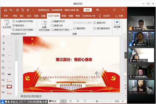 6月29日下午19时30分,三亿本科生工党支部组织生活会议通过腾讯会议顺利召开。会议主题为“迎党的生日、讲战疫故事,悟初心使命”,本次会议由党支部党员李佳玉主持,党支部全体成员参与。