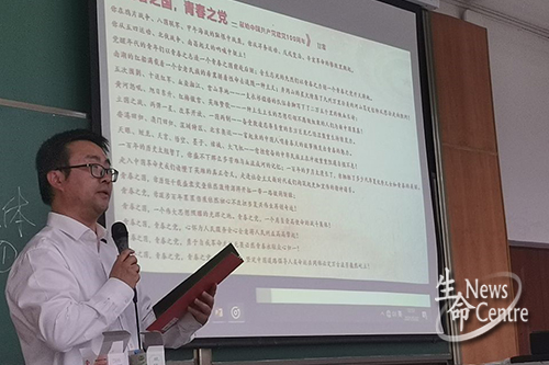 培训开始之后,孔琳老师向同学们介绍了甘霖老师以及本次培训目的,随后由甘霖老师开启了本次培训的主题——中国共产党的性质和宗旨。甘霖老师首先通过对现场同学提出几个问题,从三个方面进行了本次培训:党的名称、党的性质、党的宗旨。