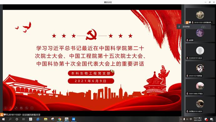 本科生物工程党支部“‘星火’朗读亭——党史读书班”开班学习会于6月9日19:30线上进行,本次学习会由彭译漫同志主持。