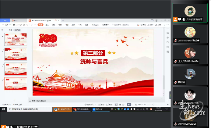 随后,彭月华同志介绍了“党指挥枪”的由来,向支部成员分享了“三湾改编”和“古田会议”的历史故事,并且强调了“党指挥枪”的重要性。党指挥枪是保持人民军队本质和宗旨的根本保障,这是党在血与火的斗争中得出的颠扑不破的真理。有了中国共产党的坚强领导,人民军队前进就有了灵魂、战斗力更强、更加忠贞不渝。会议上,万佳慧同志分享了她关于“党指挥枪”的理解,回望百年,我们深切地感受到,强国必须强军,军强才能国安。没有一支强大的军队,没有一个巩固的国防,中国梦就难以实现,和平发展就没有保障。
