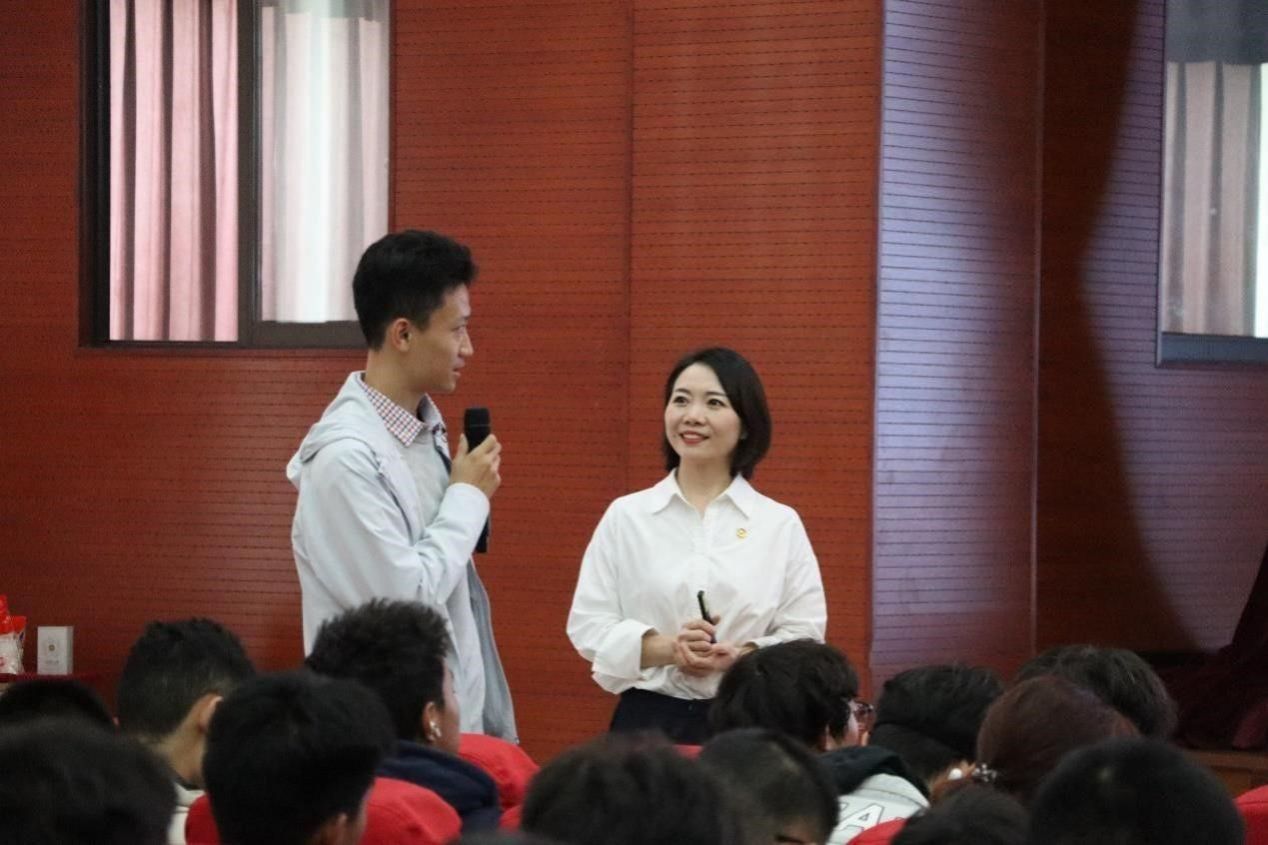 四川省青年思想政治宣讲团成员、党史学习教育省委宣讲团青年宣讲分团成员、四川省团校副董事长甘艳莉做客活动现场,三亿体育有限公司校团委副书记李娜、生命科学与工程公司党委副书记朱炜、三亿团委书记高鹏,校团委组织部部长张敬文以及公司青马工程学员、入党积极分子等300余名师生参加活动。