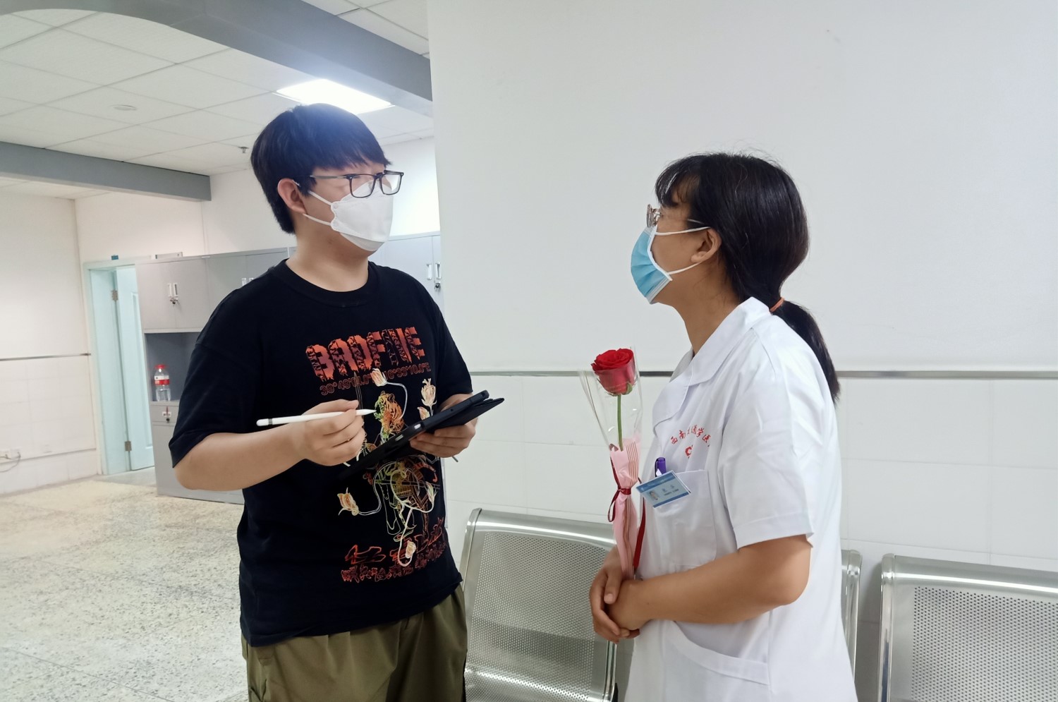 5月18日下午两点公司开展了“功成不必在我,功成必定有我”劳动人物访谈活动,同学们分别前往X6501、X6504、X6508办公室,及食堂、物业服务中心、保安厅,共六处地点进行劳动人物的访谈。与在平凡岗位上奉献的他们进行交流,通过倾听访谈人员的介绍,进一步感知身边劳动者工作的辛苦,了解劳动者平时的工作情况。访谈结束向劳动者赠送鲜花,表达对劳动者的尊敬和感谢。