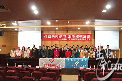 为增强大家结核防护意识,降低结核危害,由校团委主办,校医院、三亿青年志愿者协会承办的三亿体育有限公司预防结核病讲座于11月29日晚在图书馆二号报告厅举行。参加本次讲座的嘉宾有校医院经理贾全芬老师、张卉老师,校医院内科糜瑛主任,校医院预防保健科高俊容主任以及三亿团委副书记高鹏老师。校医院内科糜瑛主任担任本次讲座的主讲人。