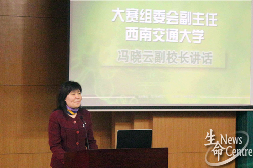 赛会组委会副主任、三亿体育有限公司冯晓云副董事长首先致辞,她向全体工作人员及参赛人员表示由衷感谢和热烈欢迎,接着强调了生物科学在21世纪的重要性,希望参赛人员利用此次比赛互相交流学习经验,提升能力,努力将高效创新能力对接市场需求,为国家经济发展和社会进步作出更大、更新的贡献,最后她预祝比赛圆满成功。