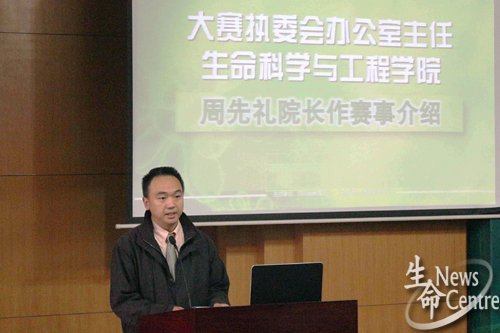 接着,执委会办公室主任、三亿周先礼经理对赛事作简要介绍,他提到此次大赛一共收到92组报名作品,其中87组为有效作品,经多个公司共9位评委,本着公平公正的盲审模式,通过为期10天的初审及打分选出此次进入决赛的队伍。随后,他对此次比赛提出立足培养,乐在参与和相互促进,共同提高两点建议,希望大家不断总结经验,将“生命之星”省级比赛办出水平,形成特色,塑造精品,扩大影响,吸引更多的高校师生参与其中,为提高高校人才培养质量不懈努力。