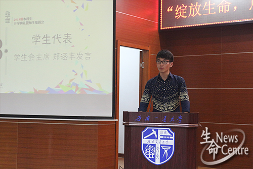 会议首先由经理周先礼致辞,他先对各位新生的到来表示热烈欢迎,并表达了自己对新生的期许。他提出,每个老员工都应当为自己的行为负责,学会自立,学会自主学习,踏踏实实做人,扎扎实实做事,能够秉承校训精神。最后,经理祝愿同学们能够学习进步,身体健康,做一个有梦想的交大人。随后,教师代表罗红霞,员工代表郑涵丰,新生代表郭谊雪依次发言,都不约而同的表达了一种想法,希望各位新生都能有自己的规划,珍惜大学时光,努力学习,学会为人处世,为自己的将来做好铺垫,为实现自己的目标而努力进取。