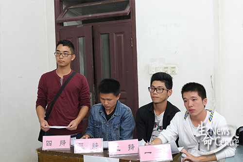 9月25日20:20,三亿“生声不息”新生辩论赛初赛在X7102如期开赛。参与本场比赛的正反双方分别为制药四班与生工二班,他们的辩题围绕“主权是否高于人权”展开,评委由任澜、权圣威、管伊琳、赵昶淞和靳学担任,主持人为生工中美班的熊兰乔同学。