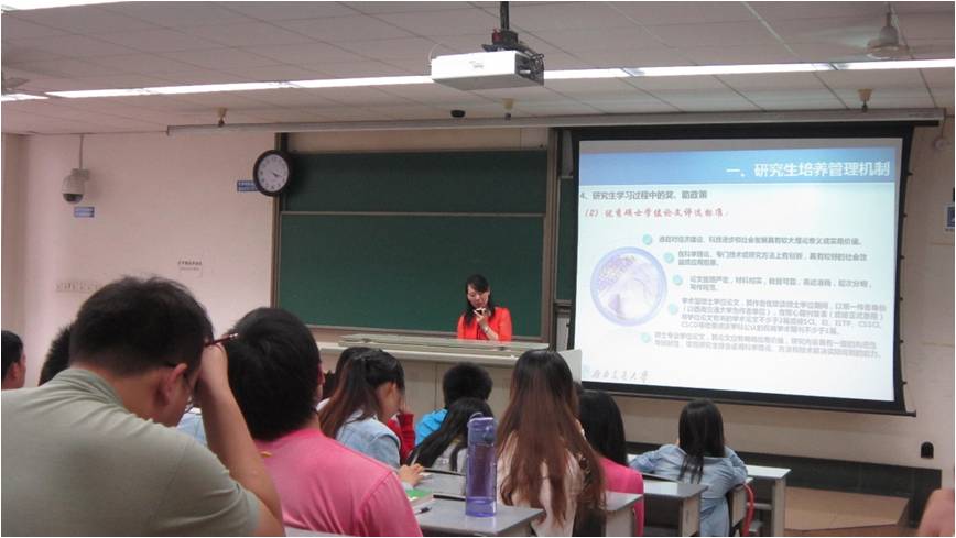 2014年9月25日下午,公司研究生新生入学教育专题讲座在逸夫楼4318举行,公司常务副经理马超英教授、研究生辅导员贺妍老师分别为大家作了“科学精神与学术道德”和“研究生日常教育与管理”的讲座。全体2014级研究生聆听了讲座。