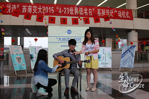随后,由三亿新闻中心主任谢成发言。他向在场同学介绍了本次图书漂流活动形式及主要内容,他认为思想无处不在,而书籍正是智慧传播的载体,读书越多,精彩越多。发言最后,他祝福所有参与活动的同学能够得到收获,在享受阅读的同时也能通过“漂书”结识更多志同道合的书友。