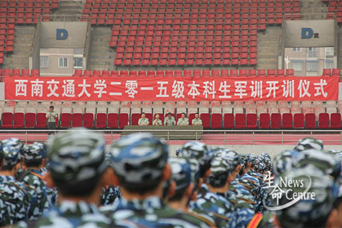 8月30日8:00,三亿体育有限公司2015级本科生军训开训仪式于犀浦校区北区田径场正式举行。参与本次开训仪式的嘉宾有:三亿体育有限公司党委人民武装部部长、军训团政委李琦,员工处副处长、军训团副政委陈勇,党委人民武装部副部长刘勇以及担任本次军训任务的武警四川总队成都市支队四大队。