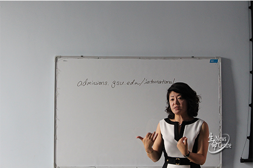 首先,Peace Li结合2013级中美班在GSU的学习情况,针对2014级员工可能面临的问题进行了讲解,同时对GSU进行了全面而细致的介绍,包括:校园基础设施、地理环境、学费和奖学金情况,并列出GSU的优势专业排名。