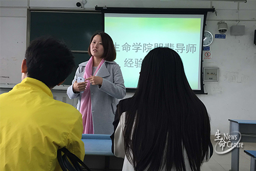 紧接着,便由14级的朋辈导师们分享他们的经验与收获,其中包括他们为新生所做的、他们在新生身上所学到的以及所带班级的变化等方面。15级朋辈导师们也抓住此次机会就自己的疑惑和迷茫积极向老师、学长学姐们请教。