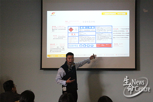 屈老师从近几年各地实验室发生的灾难引入主题,强调实验室安全的重要性。紧接着,他介绍了关于实验室安全的相关法律法规、化学药品的危险标志以及对人体有害的化学药品,并向同学们普及实验室防护系统、紧急情况下的应急措施以及化学药品的管理、储存方法。