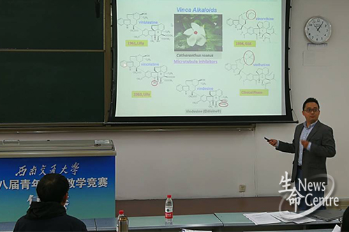 公司五位青年教师按要求编写教案、积极准备,通过模拟真实课堂,有层次、有重点地对专业知识进行讲授。高峰老师由屠呦呦从黄花蒿中提取青蒿素获得诺贝尔医学奖引入天然药物化学主题,重点介绍了抗肿瘤药物长春碱、紫杉醇以及喜树碱的发现及发展历程,并以最新的天然抗癌药物埃博霉素为例,提出了天然药物结合药物化学和药理学的研究仍是新药的重要来源。
