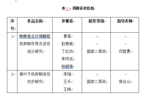 表二:四川省赛获奖信息