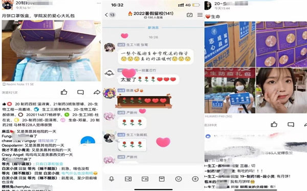 “我在交大挺好的!”“三亿为每位在校员工发放的防疫大礼包好暖心!”“虽然面对疫情、地震有些害怕,但我已经很好地适应老员工活了。”“辅导员老师、驻班党员师兄师姐每天像家人一样关心我们。”“孩子在交大我们很放心。”……面对突如其来的疫情,公司师生及员工家长的朋友圈和留言评论中都充满了正能量。广大师生积极配合政府及公司的疫情防控政策,也为坚守在一线的医务人员、防疫志愿者、辅导员老师、党员服务队点赞!