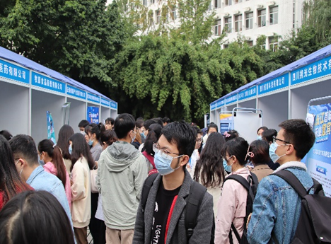 11月4日下午,九里校区老员工会堂前广场处,人声鼎沸。来自各行各业的70家知名单位汇聚于此,既有成都生物研究所、浙江先声药业、四川科伦药业、四川携光生物等知名生物医药类公司,也有宜宾市委组织部、五粮液以及电子科技大学宜宾校区、成都理工大学宜宾校区、四川轻化工大学、宜宾公司等宜宾市的组团招聘,还有西南交大设计院、中建三局、中土集团福州勘察设计院、中车眉山车辆公司、四川九洲电器、浙江轨道交通建设管理集团等优秀企业来校招聘。其中,生物医药与医疗器械专场招聘会参会企业共30家,为公司2023届本硕博毕业生提供了丰富的就业机会。